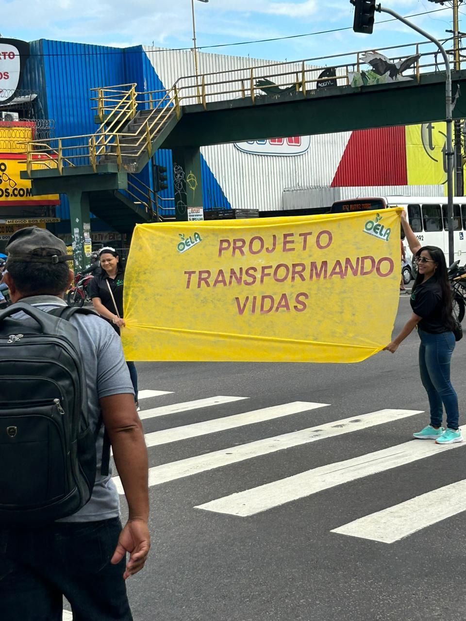 Na ocasião, os educadores da OELA realizaram uma panfletagem sobre o lançamento do projeto Transformando Vidas e de outros projetos em execução na OELA, como o Coletivo On-line do Instituto Coca-Cola, e o projeto Esporte Educacional na Amazônia, que tem patrocínio da Nubank, e ajuda crianças e adolescentes com aulas gratuitas de judô, muay thai e esportes coletivos.