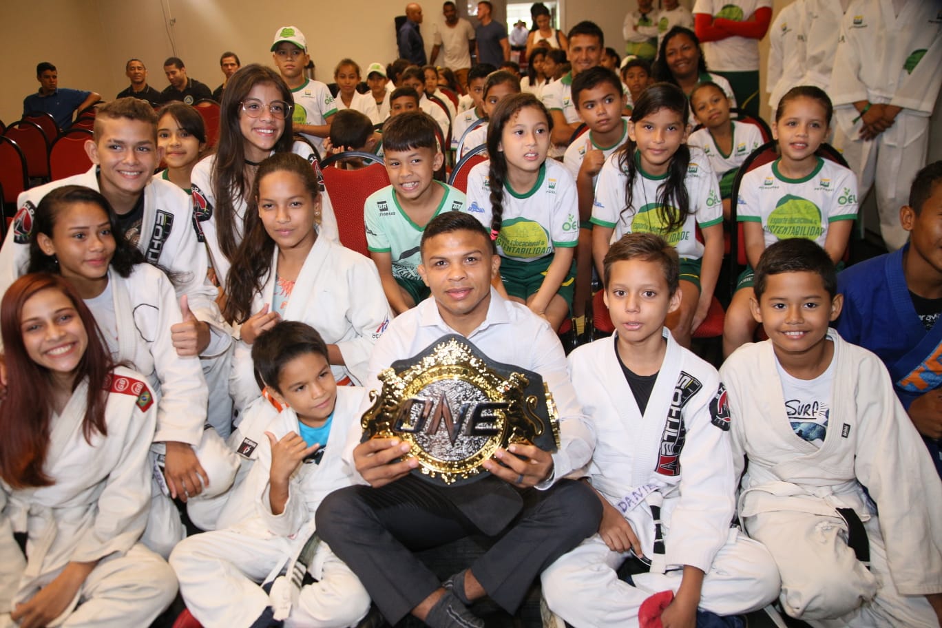 O participante do projeto, da modalidade taekwondo, Adalberto Esquerdo, 16, contou que prestigiar o evento foi uma oportunidade marcante e uma honra conhecer de perto um campeão do MMA, além de ser uma inspiração para ele continuar praticando o esporte.